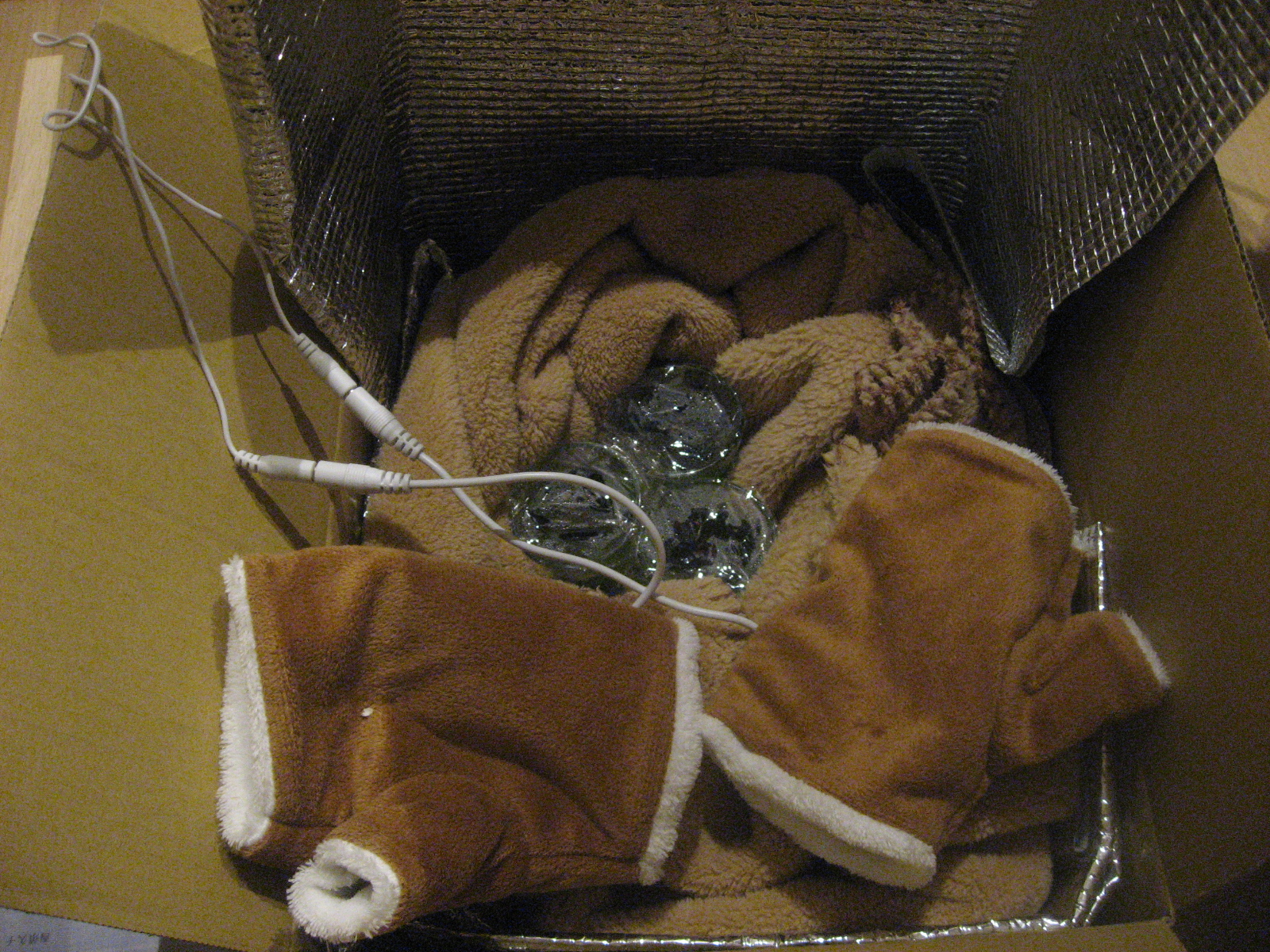 USBあったか手袋、アルミシート、ブランケット、段ボール。